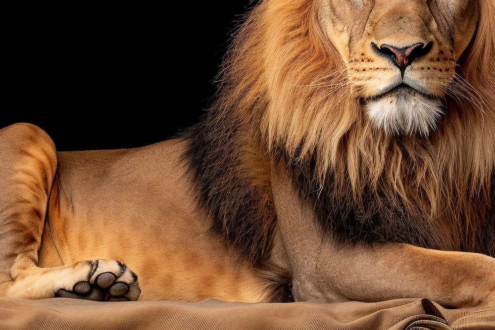 A propos de "Lion au repos sur fond de tissu"