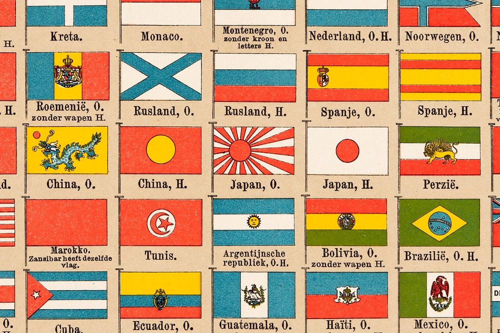Cette estampe éducative en couleurs datant d'environ 1900 montre un grand nombre de drapeaux de pays maritimes du début du 20e siècle. Une distinction a été faite entre les pavillons des navires de guerre et ceux des navires marchands. Un bon cadeau pour une personne intéressée par la vexillologie, la botanique ou la science des drapeaux.