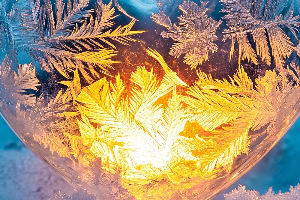 Ce magnifique dessin représente un objet de glace en forme de cœur, joliment décoré de délicats motifs gelés. À l'intérieur, une chaude lueur dorée rayonne, offrant un beau contraste avec l'arrière-plan froid et hivernal. Ce motif évoque un sentiment de chaleur et de sécurité, même au milieu du froid. Il s'agit d'un ajout parfait à une pièce qui a besoin d'une touche de romantisme et d'élégance. Cette œuvre d'art est idéale pour les intérieurs modernes et peut être utilisée comme source d'inspiration pour une décoration atmosphérique dans la maison.
