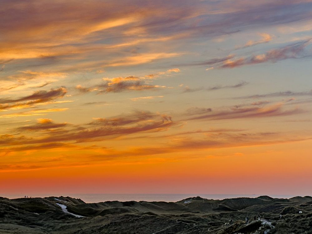 Coucher de soleil sur le Lyngvig Fyr près de Hvide Sande, Danemark.