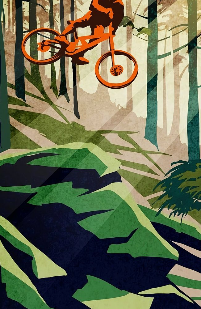 Acheter ce art numérique MA THÉRAPIE : Cyclisme en forêt de montagne par Maria Blair sur toile, aluminium, ArtFrame ou photographie (encadrée), impression d'art en haute définition et tout type de format.