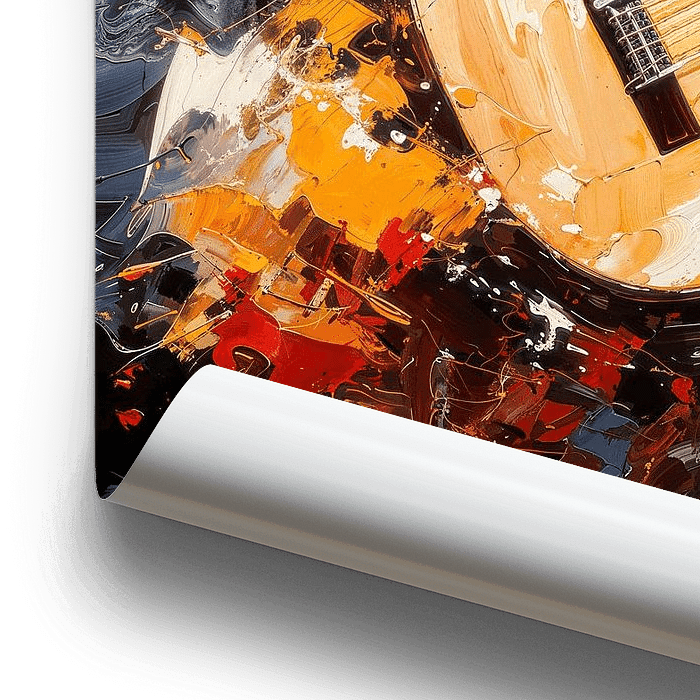 Que serait le monde sans musique ? Découvre une guitare dans un style expressionniste abstrait très coloré. Fantastique mise en scène décorative aux couleurs vives. Ce motif a été créé en collaboration avec KI.