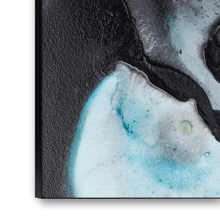 Achetez cette œuvre d'art abstraite Macro noir et turquoise par angelique van Riet sur toile, aluminium, ArtFrame ou photographie (encadrée), impression d'art en haute qualité et tout format.