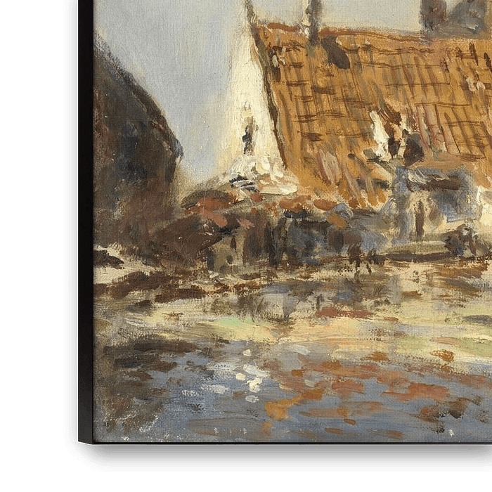 Achetez Maisons sur un cours d'eau près de Crooswijk, Johan Barthold Jongkind en tant que reproduction sur toile, aluminium, ArtFrame ou photographie (encadrée), impression d'art en haute qualité et tout format