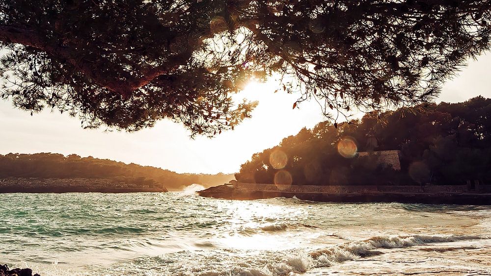 La Cala Mondragó dans la chaude lumière du soleil couchant. La baie située sur la côte sud-est de Majorque fait partie du Parc Natural Mondragó et est donc, en tant que réserve naturelle, en grande partie épargnée par les constructions habituelles.