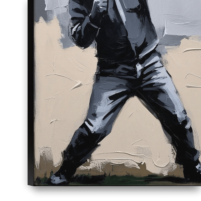 Cette œuvre d'art moderne représente un personnage masqué lançant un bouquet de fleurs. L'image combine force et vulnérabilité, opposant les fleurs, symbole de paix, à l'attitude de protestation. Le tableau attire un large public grâce à ses éléments reconnaissables et à sa palette de couleurs contrastées. Elle s'intègre parfaitement…