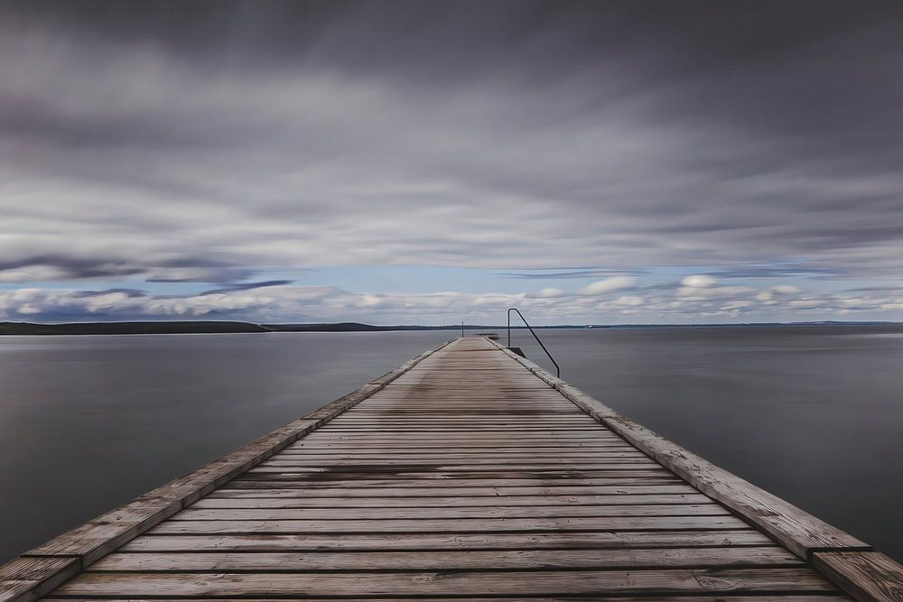 Cette photo a été prise sur une plate-forme en bois, en regardant la mer.