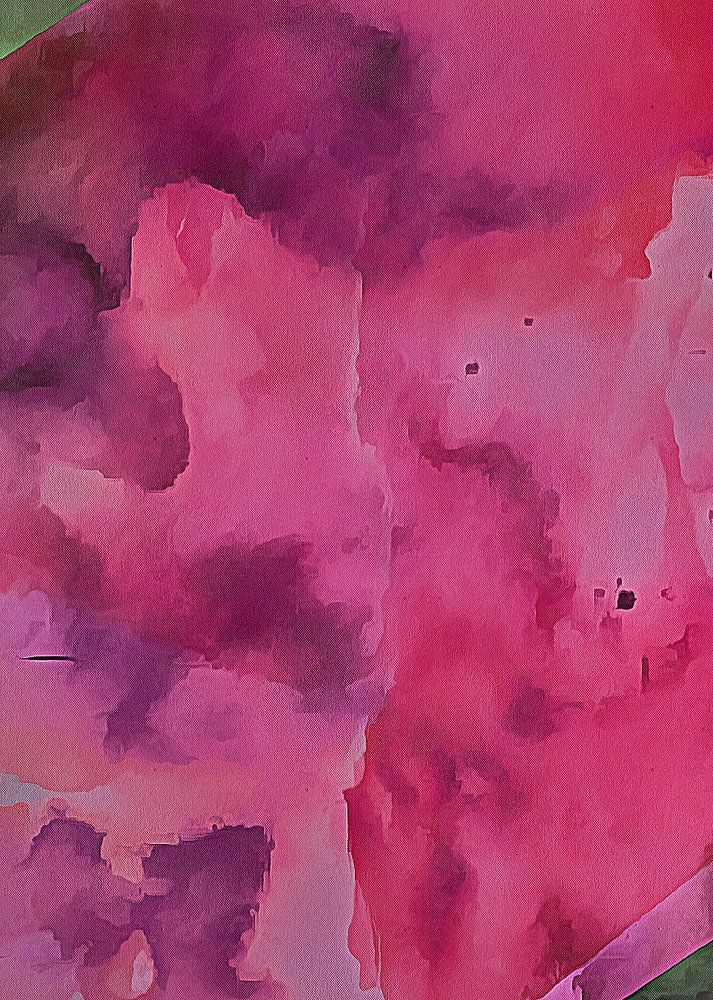 Les nuances de rose, y compris le rose sombre, sur un fond de tons terreux, créent des couches intéressantes dans cet abstrait.