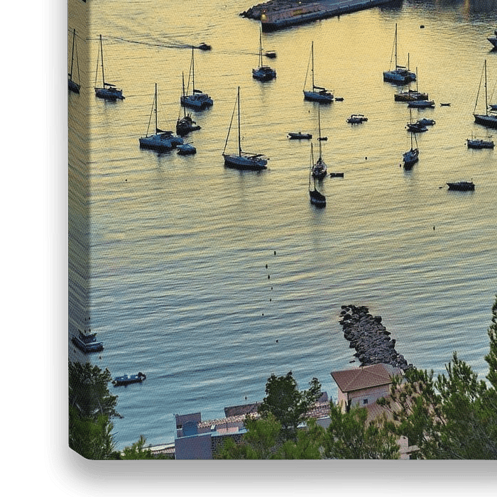 Achetez cette photo Mer Méditerranée espagnole, coucher de soleil idyllique à Port de Soller à Majorque, îles Baléares par Alex Winter sur toile, aluminium, ArtFrame ou photographie (encadrée), impression d'art en haute qualité et tout format.