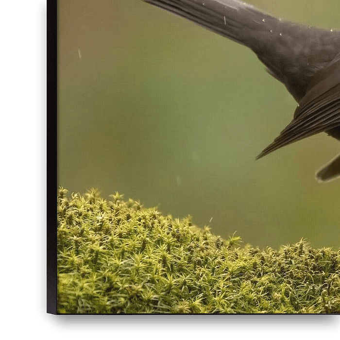 Achetez cette œuvre d'art d'oiseau Merle noir dans la forêt par Tanja van Beuningen sur toile, aluminium, ArtFrame ou photographie (encadrée), impression d'art en haute qualité et tout format.