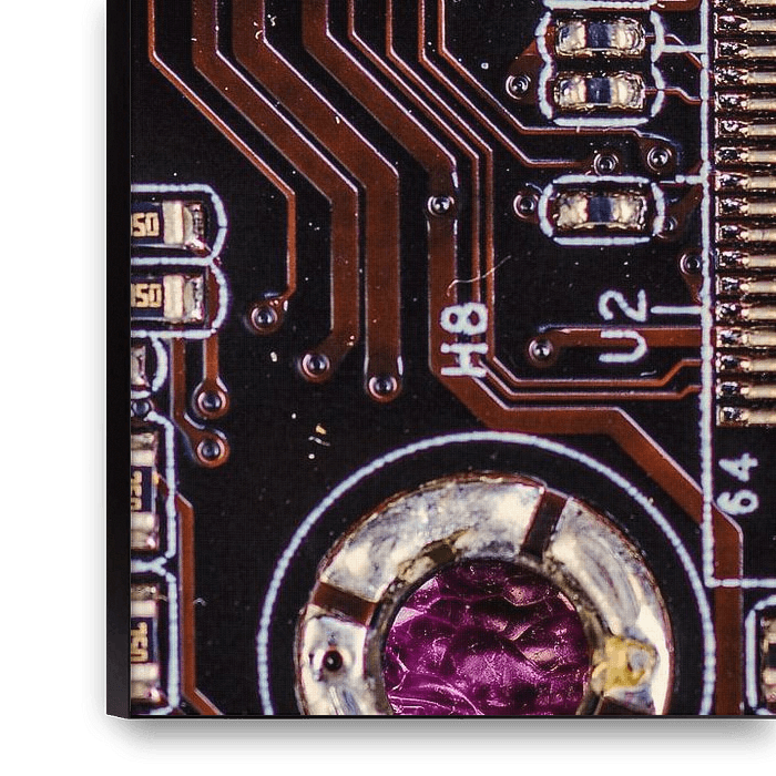 Achetez cette photo Microprocesseur sur circuit imprimé en détail par Alexander Baumann sur toile, aluminium, ArtFrame ou photographie (encadrée), impression d'art en haute qualité et tout format.