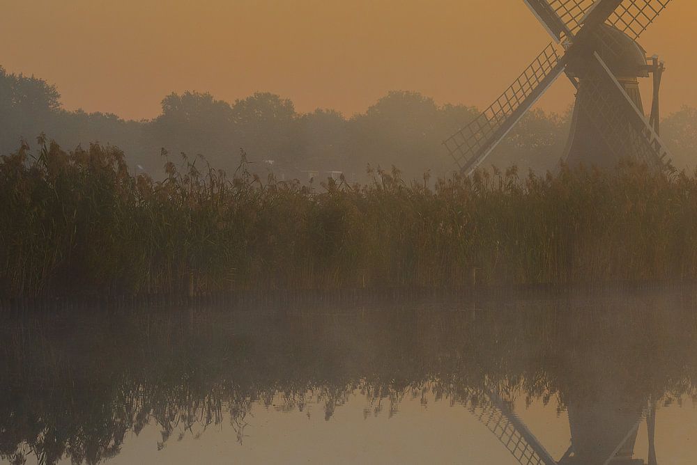 Moulin où je vérifie régulièrement les conditions dans mon quartier. En particulier dans le brouillard, on obtient souvent une belle atmosphère rustique dans la photo. Le bonus de cette photo est qu'un cormoran est assis sur la voile. Il n'y a pas beaucoup de moulins à vent dans mon quartier, je suis donc heureux que ce moulin à vent se dresse joliment dans le paysage. Idéal pour une photo de paysage comme celle-ci. J'ai placé mon Nikon d800 et mon objectif 70-200 2.8 sur un trépied et j'ai pris cette photo avec la vue en direct.