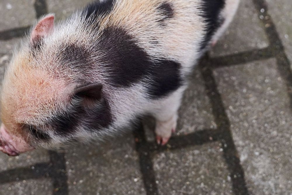 Mini-porc Ferkel lors de sa première sortie à la ferme. par Babetts Bildergalerie
