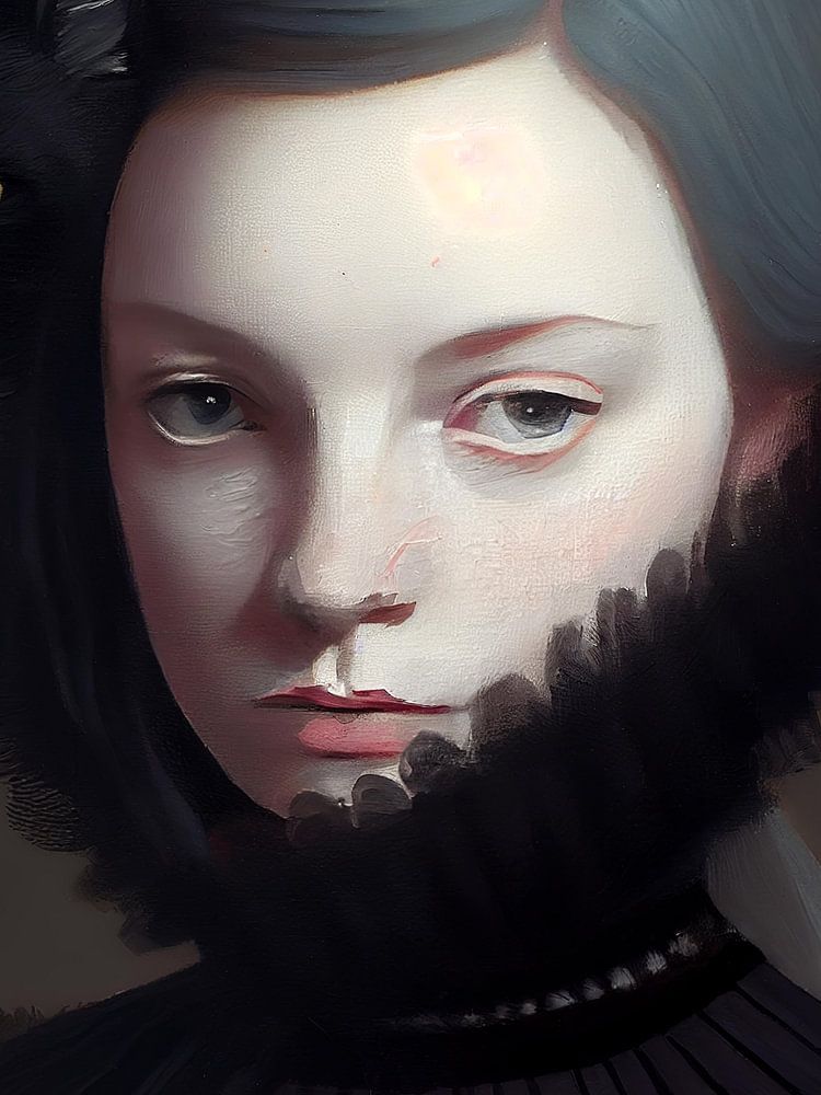 Miss Black Kitty est un portrait créé numériquement qui rend hommage aux grands classiques de la peinture. Cette figure féminine troublante émerge de l'ombre avec une présence énigmatique et captivante. Son visage mystérieux et son regard pénétrant suggèrent un caractère nocturne et isolé, tandis que la présence des chats autour d'elle ajoute une aura de fascination et de mysticisme.