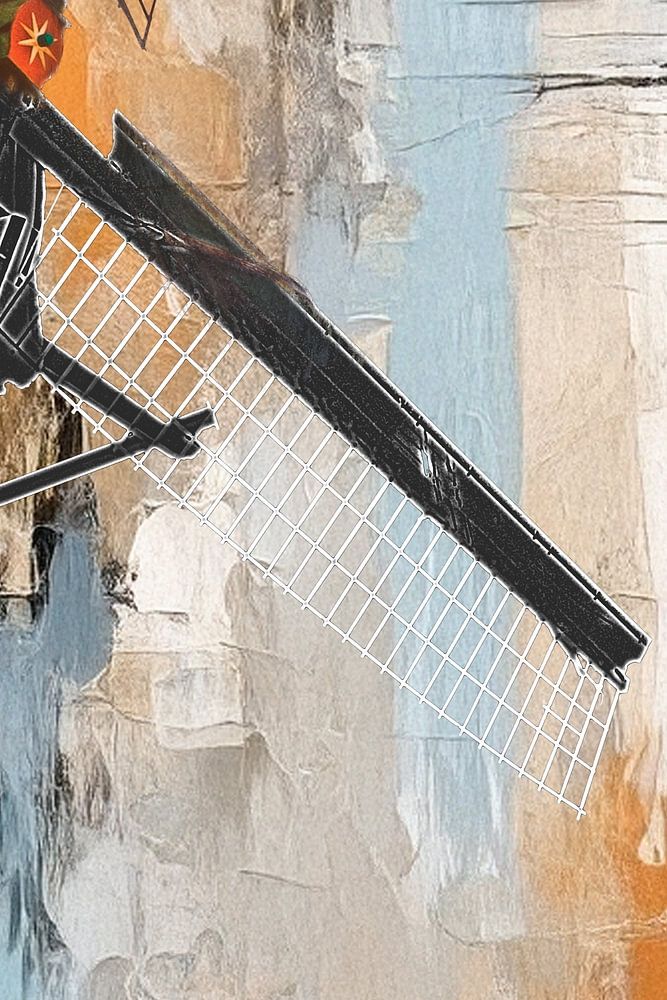 Œuvre d'art réalisée à partir de la combinaison d'une photo d'un moulin à vent et d'une peinture abstraite.
