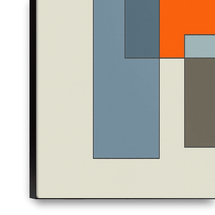 Des lignes claires et des formes géométriques créent une composition harmonieuse et minimaliste. Des surfaces colorées réduites et des contrastes subtils créent une tension entre le calme et le mouvement. La lumière et l'ombre renforcent l'effet spatial, tandis que les structures abstraites laissent place à l'interprétation personnelle.