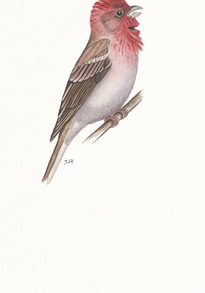 Moineau rouge sur une assiette de la vieille école. Illustration Jasper le Cavalier.