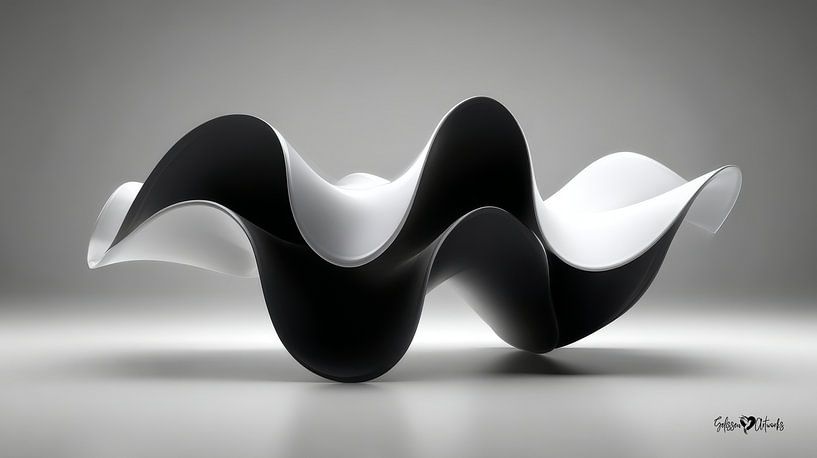Monochrome Flow – een unieke serie abstracte zwart-wit kunstwerken waarin vorm, beweging en contrast elkaar in perfecte balans ontmoeten.