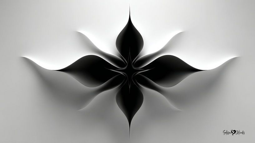 Monochrome Flow – een unieke serie abstracte zwart-wit kunstwerken waarin vorm, beweging en contrast elkaar in perfecte balans ontmoeten.