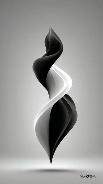 Monochrome Flow – een unieke serie abstracte zwart-wit kunstwerken waarin vorm, beweging en contrast elkaar in perfecte balans ontmoeten.