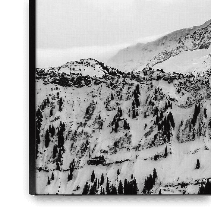 Achetez cette œuvre d'art de paysage Montagnes en noir et blanc en Suisse par Poster Art Shop sur toile, aluminium, ArtFrame ou photographie (encadrée), impression d'art en haute qualité et tout format.