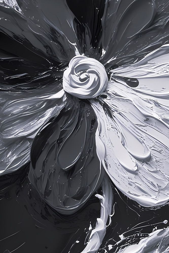 Ce motif élégant et sophistiqué représente une fleur abstraite dans des tons monochromes, parfaits pour les amateurs d'art minimaliste et moderne. Les pétales de la fleur s'écoulent en lignes fluides et sont entrecoupés de couleurs audacieuses et contrastées telles que le noir, le blanc et les nuances de gris. La texture et le mouvement du dessin donnent à la fleur un aspect dynamique, tandis que la palette de couleurs limitée apporte un sentiment de calme et d'équilibre. Cette œuvre d'art est idéale pour décorer un espace calme et élégant, comme une chambre ou un bureau, où elle peut servir à la fois d'œuvre d'art et de source d'inspiration. La combinaison de l'abstraction et de la nature en fait une œuvre d'art adaptée à tous les intérieurs qui ont besoin d'une atmosphère contemporaine et élégante.