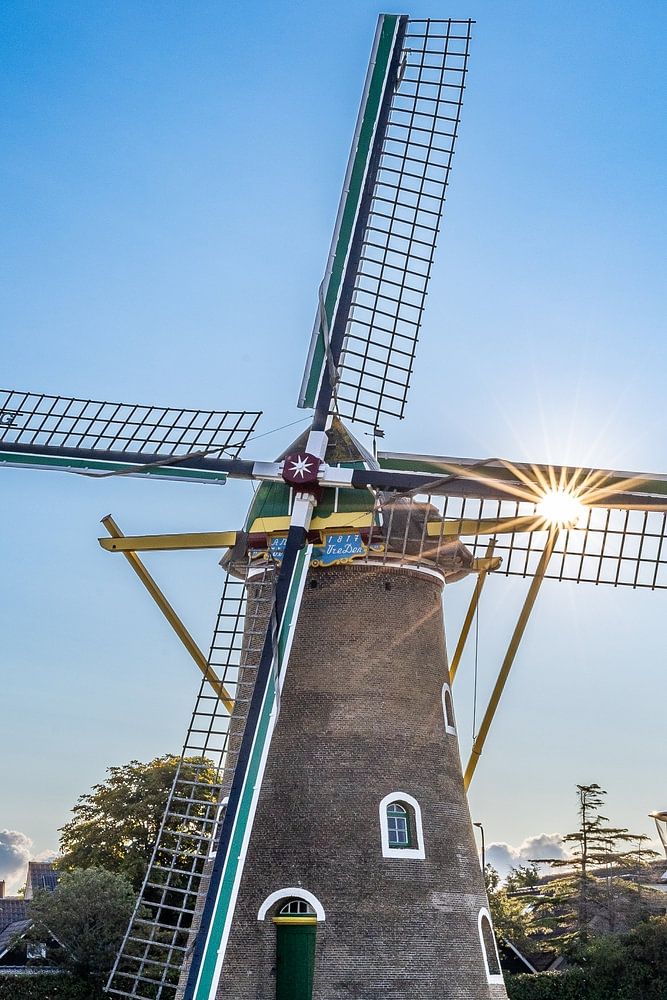 Le petit village de Domburg, en Zélande, abrite le moulin Weltevreden. En entrant dans le village, on peut déjà apercevoir le moulin.