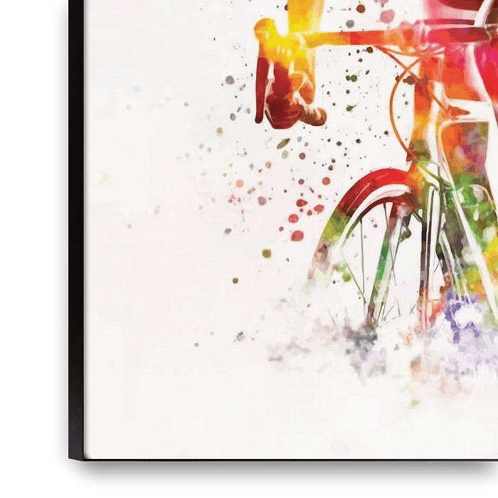 Une peinture numérique dynamique qui capture le flou d'un cycliste en mouvement. Les couleurs vives et les formes abstraites donnent une impression de vitesse et d'énergie.