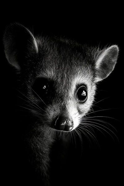 Un petit être mystérieux aux grands yeux brillants capte immédiatement l'attention du spectateur. Sa fine fourrure grise et ses délicates moustaches lui confèrent un charme timide. Cette créature fascinante serait parfaitement mise en valeur dans un salon, où elle pourrait stimuler les conversations et éveiller la curiosité.