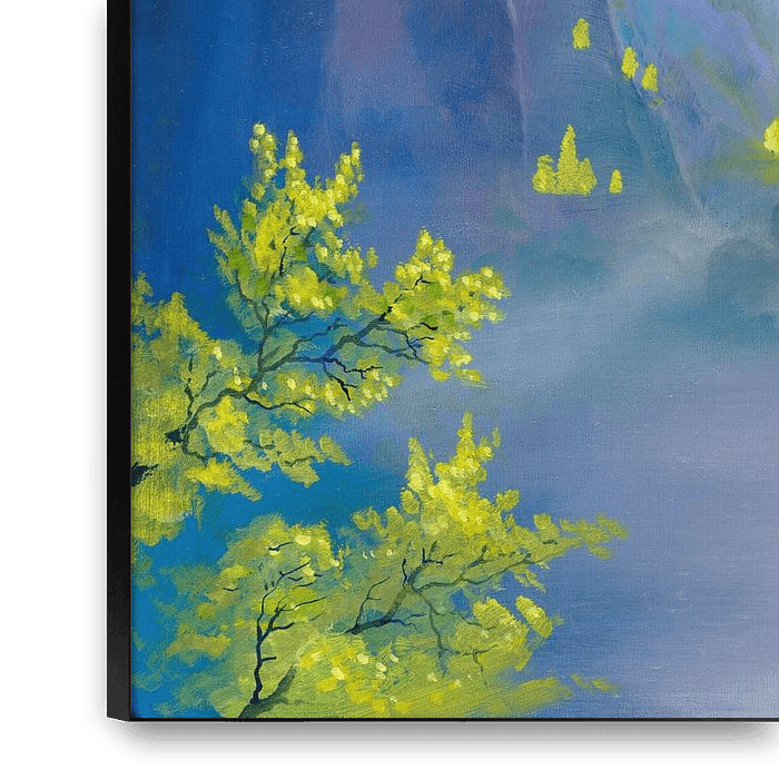 La représentation des canyons dans l'art sert souvent à symboliser les défis, les obstacles et le voyage humain. Ici, le canyon est interprété comme une allégorie des difficultés et des ténèbres de la vie. Les arbres lumineux sont ceux qui montrent le chemin, encouragent et inspirent à surmonter les obstacles et à atteindre le but.