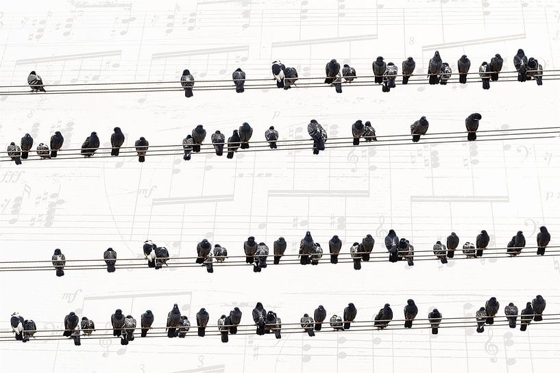 Achetez cette œuvre d'art d'oiseau Musique des pigeons par Arjen Roos sur toile, aluminium, ArtFrame ou photographie (encadrée), impression d'art en haute qualité et tout format.
