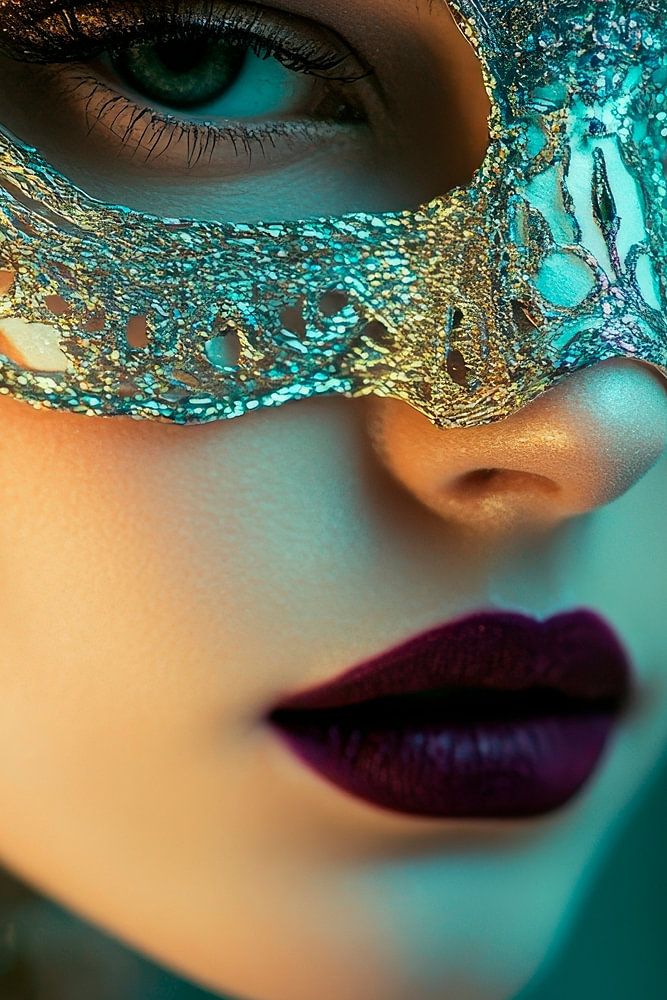 Un regard mystérieux, capturé dans des tons argentés et dorés chatoyants, fascine magiquement les observateurs. Le contraste entre le rouge à lèvres envoûtant et le masque en filigrane crée une aura d'élégance et de mystère. Idéal pour le salon, il permet de déclencher des conversations sur l'indescriptible et de créer une atmosphère fascinante.