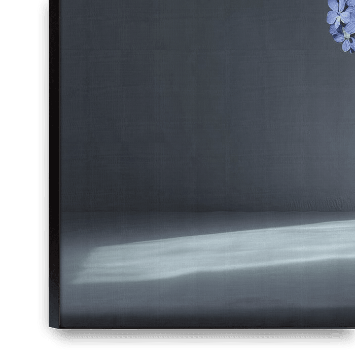 Nature morte aux fleurs bleues, minimalisme. Un jeu particulier d'ombres et de lumières, style japonais. Choisissez votre taille et votre matériau pour cette œuvre. Hortensia hydrangea.