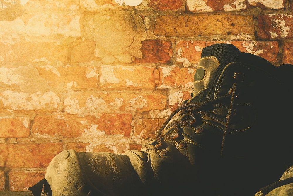 Nature morte avec des bottes de travail dans la remise, qui ont vraiment fait leur temps. Usée et plus sûre. Qu'est-ce que ces chaussures ont pu traverser ? Ils ont dû sauver le porteur de nombreuses fois, d'un clou dressé par exemple. Le hangar, lui aussi, a connu ses meilleurs jours, et le soleil brille par-dessus le mur partiellement effrité et fait profiter ces chaussures de travail, ainsi que le marteau, le ciseau et l'angle, des derniers rayons du soleil. Les couleurs de cette nature morte atmosphérique sont l'orange, le brun, le jaune, le blanc et le bleu.