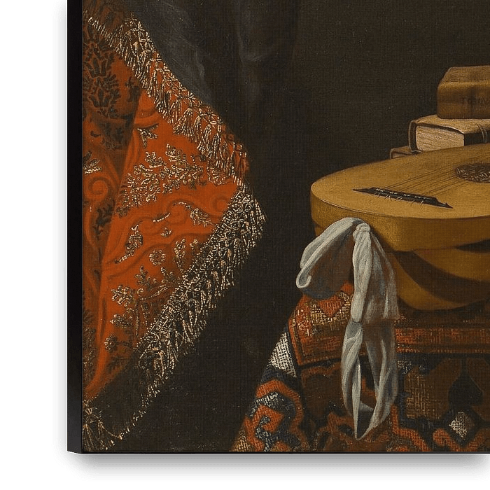 Nature morte avec instruments de musique, livres et sculpture, Evaristo Bas par Des maîtres magistraux