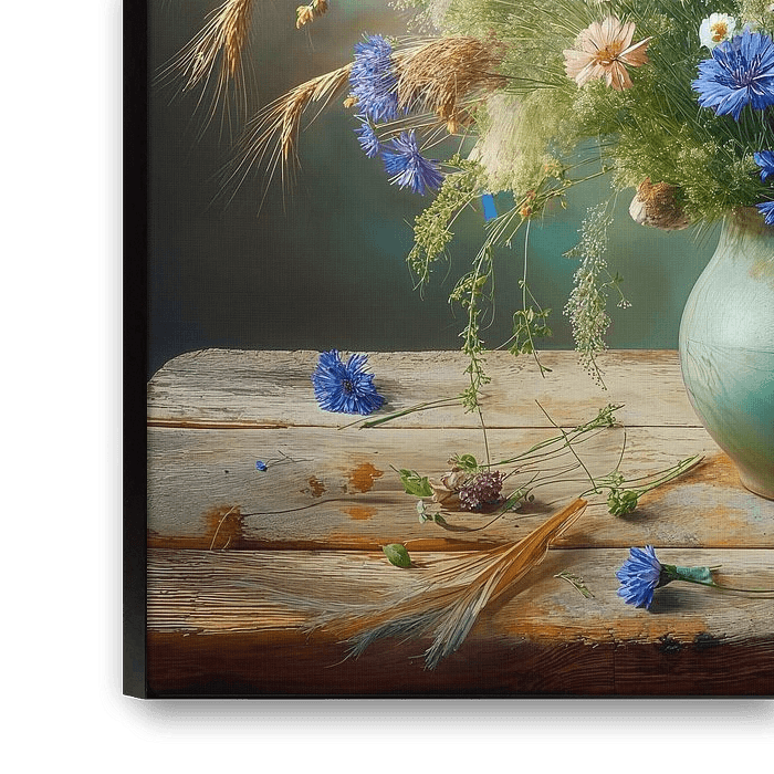 Achetez cette œuvre d'art florale Nature morte, vase avec bleuets et fleurs sauvages par Jessica Berendsen sur toile, aluminium, ArtFrame ou photographie (encadrée), impression d'art en haute qualité et tout format.