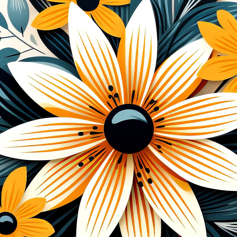 Dans un environnement serein, une fleur orange animée photoréaliste prend vie, enveloppée de feuilles vertes et turquoises luxuriantes. La fleur dégage une beauté presque tangible, avec ses pétales détaillés qui bougent subtilement dans le vent imaginaire. Les couleurs vives capturent l'essence de la splendeur naturelle et enchantent le spectateur. Le mouvement gracieux des feuilles ajoute une touche d'élégance apaisante à la scène.