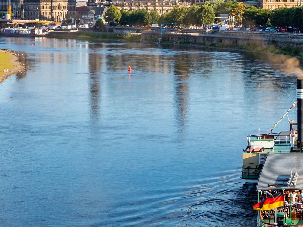 La ligne d'horizon de Dresde avec l'Elbe et un bateau à vapeur