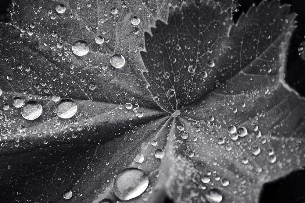 Le noir et blanc dans la nature. Après une matinée pluvieuse, je suis allé dans le jardin pour photographier. Juste un détail du jardin. J'aime la couleur, mais certaines photos sont plus fortes en noir et blanc. C'est le cas de cette photo, grâce aux gouttes sur les feuilles. Le simple fait de me promener dans le jardin et de regarder toutes les belles choses qui poussent et fleurissent me donne de l'énergie et de l'inspiration. Je photographie principalement des fleurs, des fruits et des légumes. Jetez un coup d'œil à mes autres photos dans ma boutique.