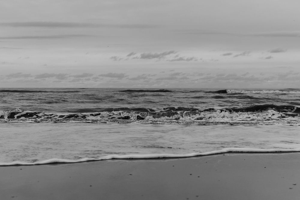 Une mer du Nord agitée par une journée d'automne. Il est agréable de prendre l'air sur la plage. Le traitement en noir et blanc fait ressortir encore plus les ondes.