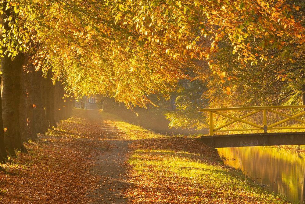 Une belle promenade avec le pont jaune avec le canal donne une belle image. Grâce à ses couleurs intenses, il donne une sensation de chaleur. Les tons d'automne sont bien rendus ici, et la couleur du jaune de pont prend toute sa place.