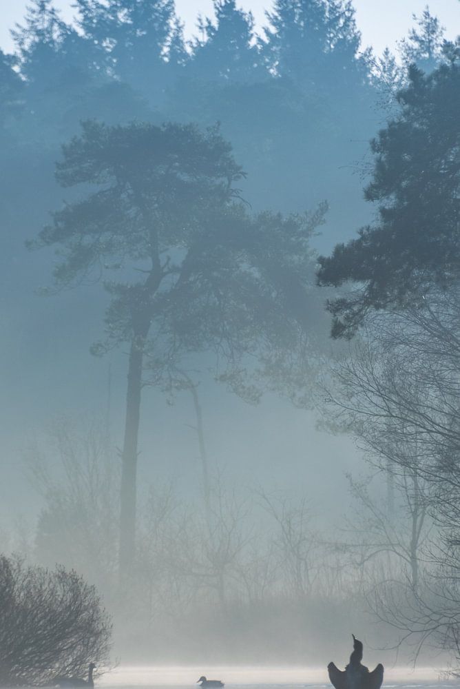 Cette photo a été prise près de l'Oisterwijkse Vennen, au lever du soleil. Vous voyez un cormoran assis sur une branche qui sèche ses ailes aux premiers rayons de soleil de la journée. Une belle atmosphère mystique.