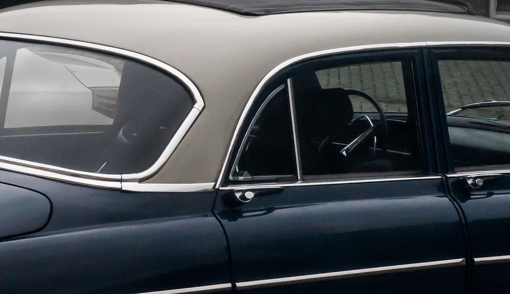 Oude auto op een parkeerterrein.