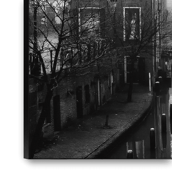 Oudegracht à Utrecht et le Gaardbrug vu du Maartensbrug en noir et blanc fait partie d'une série de photos en noir et blanc par André Blom Fotografie d'Utrecht. Il souligne le caractère monumental de la ville cathédrale.