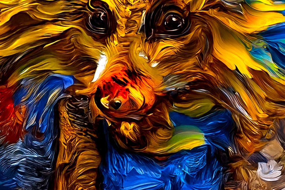 PEINTURE NUMÉRIQUE ET INTELLIGENCE ARTIFICIELLE : LE CHIEN a été créé par Photoart-Naegele 2024 à l'aide d'une intelligence artificielle.