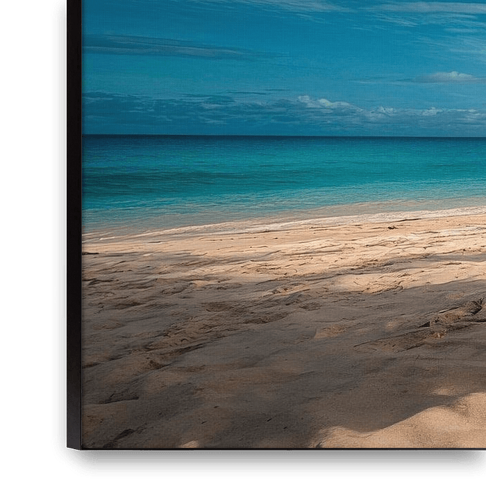 Un palmier vivant, décoré d'ornements colorés et festifs, défie la douce brise marine. Le ciel d'un bleu éclatant et les douces vagues en arrière-plan confèrent à l'image une atmosphère tropicale. Idéal pour le salon, pour apporter un sentiment de vacances et de chaleur à la maison. Un véritable accroche-regard qui invite à la rêverie !