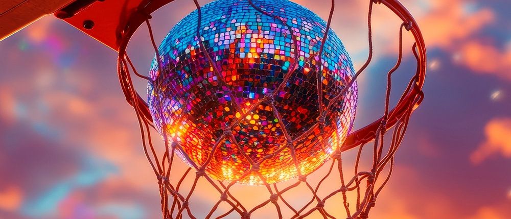 Un filet de basket-ball lumineux, pris au moment du crépuscule, irradie des couleurs vives, tandis que le ciel en arrière-plan s'embrase de tons orange et bleus enflammés. Cette composition dynamique convient parfaitement à une chambre d'adolescent ou à une salle de jeux, où elle capture sans peine l'enthousiasme et l'énergie du jeu.