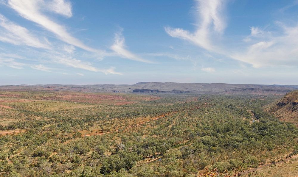 Après une montée brûlante jusqu'à un point de vue, nous avons eu cette belle vue sur la chaleur torride de l'outback australien. La photo a été prise à El Questro, le long de la célèbre route de la Gibb River.