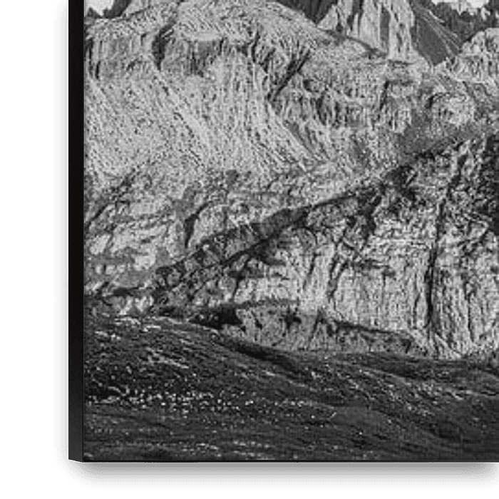 À propos de ‘Panorama de montagne des Dolomites près des Trois Cimets et de Misurina. Image en noir et blanc.’ par Manfred Voss, Photographie Noir et Blanc