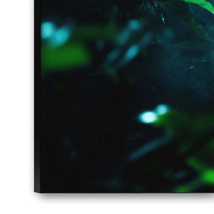 Cette image montre une majestueuse panthère noire rôdant dans une jungle mystérieuse. Les tons verts et bleus de la végétation encadrent l'apparence puissante de la panthère. Les yeux verts attirent immédiatement l'attention et ajoutent une couche supplémentaire de mystère. Ce motif s'intègre parfaitement dans les intérieurs modernes, en particulier dans les pièces où une touche de nature et d'élégance est souhaitée. Le contraste entre la panthère sombre et le fond plus clair crée un effet visuel dynamique qui respire la tranquillité et la force. Idéal pour les amoureux de la nature et de l'art.
